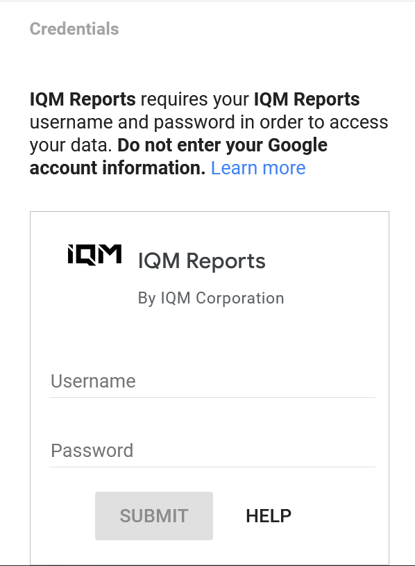If you don't want people you share a report with to be asked to input IQM platform credentials, use Owner's credentials as the report Data Credentials as described in Google Looker Studio Help.