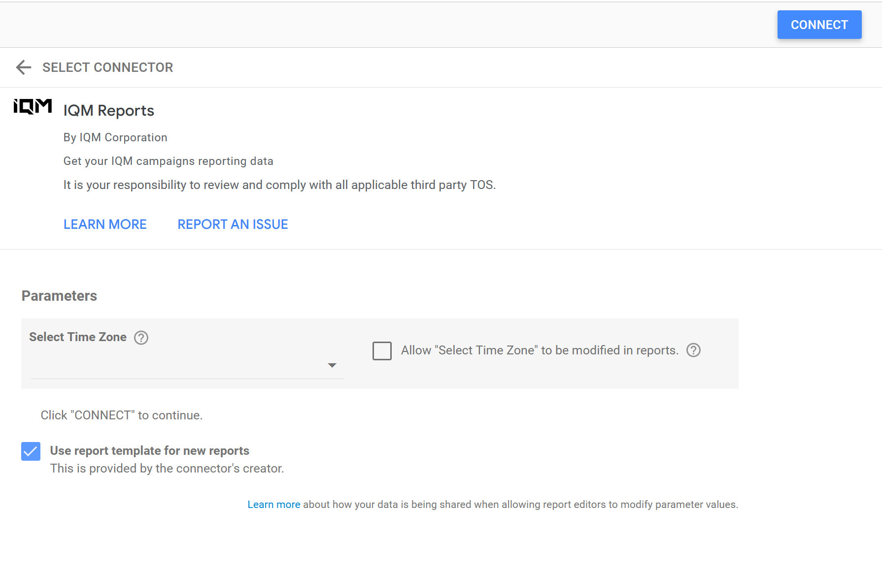 - IQM Reports Connector In Looker Studio - Add the connector directly in Looker Studio