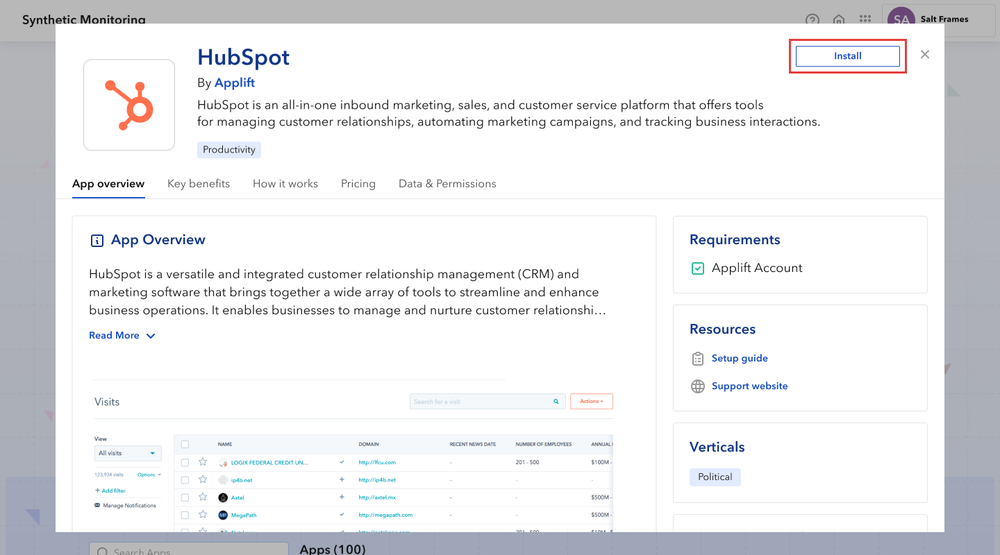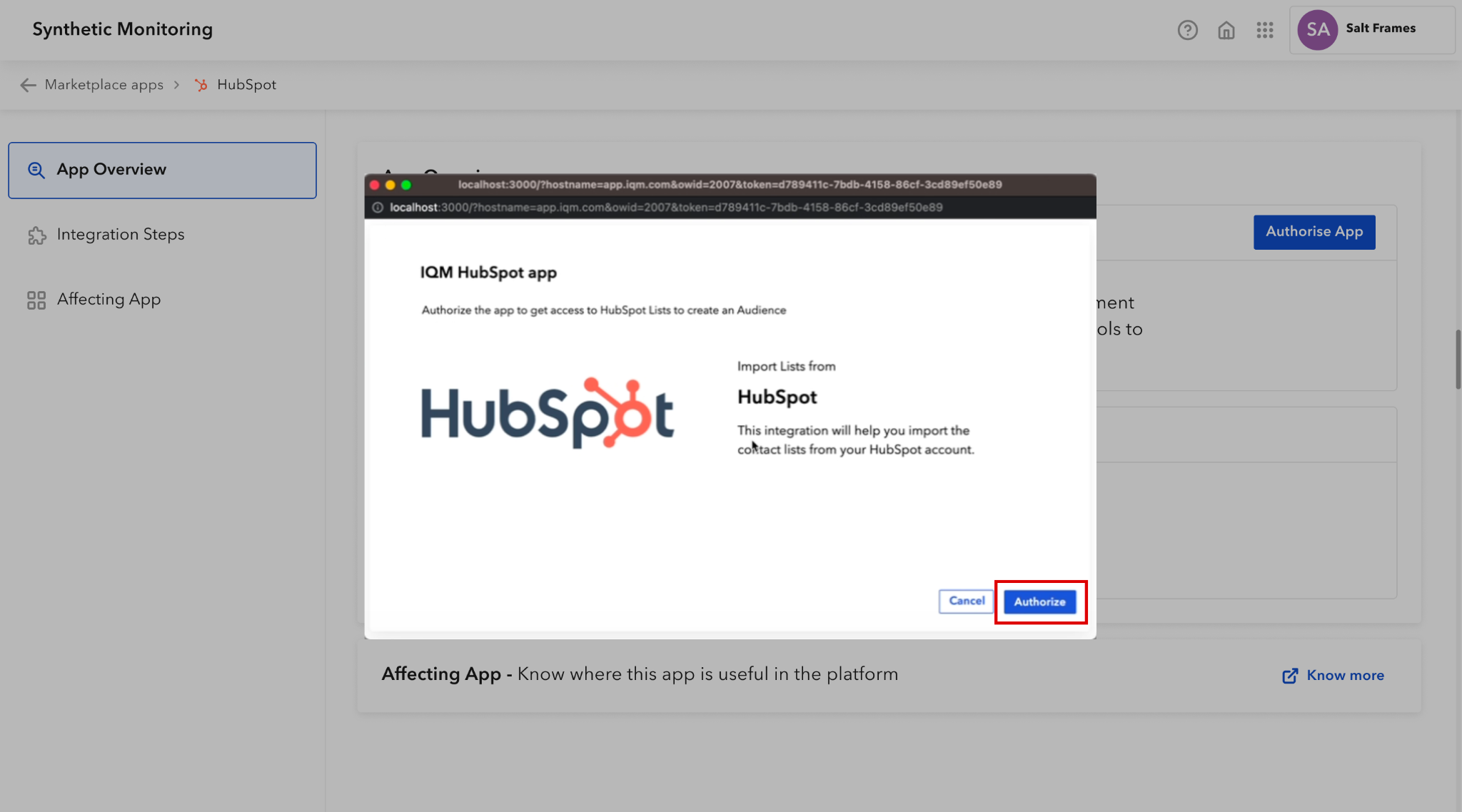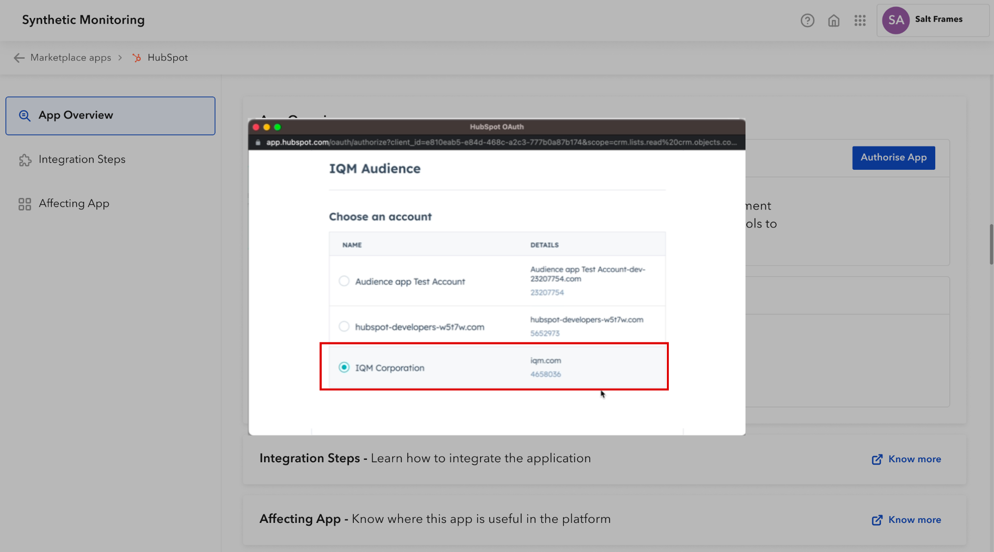 Any other user within your organization must also install the HubSpot app within their instance of IQM's Platform: