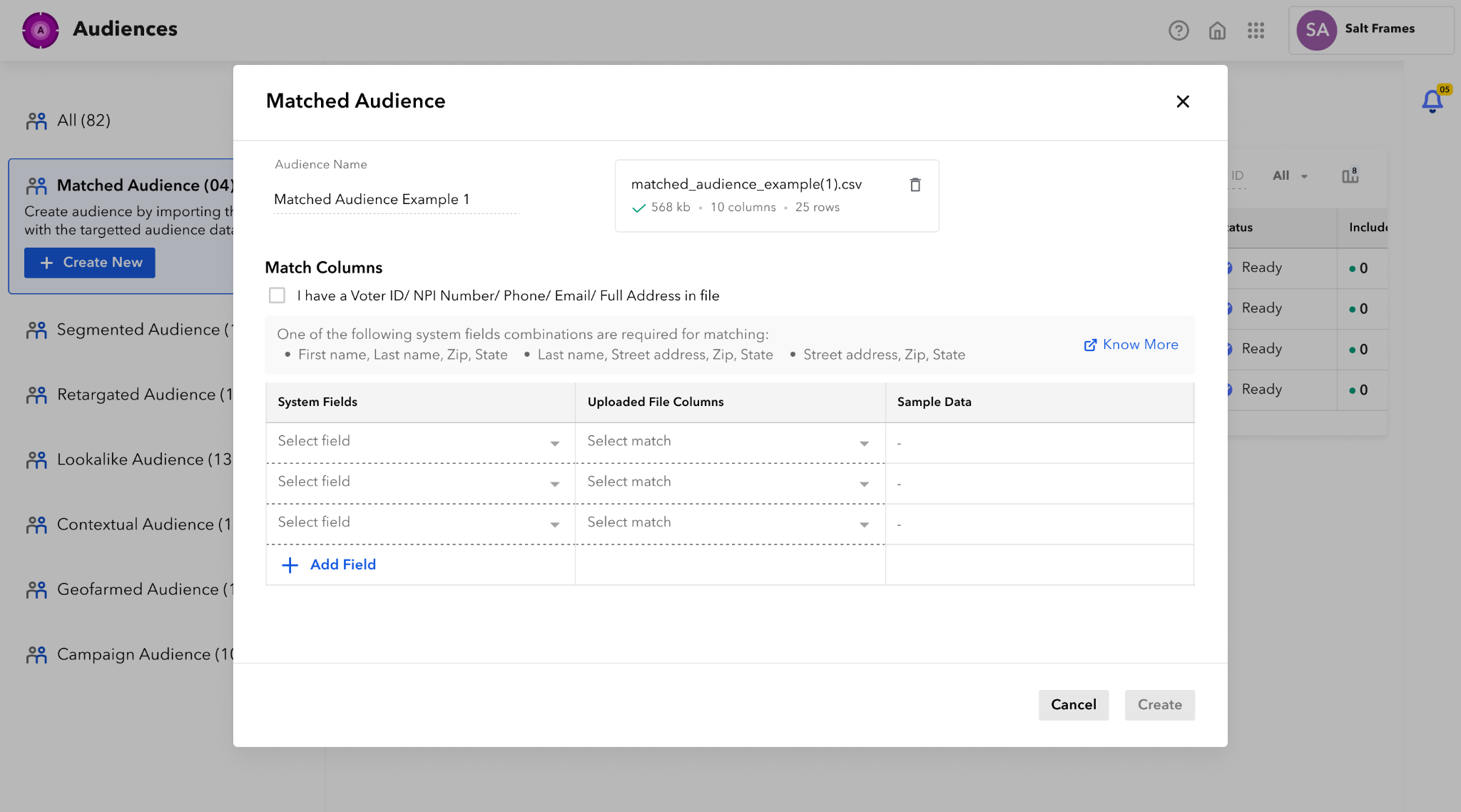 For more information about matching criteria, see IQM Matched Audience Help Center articles.