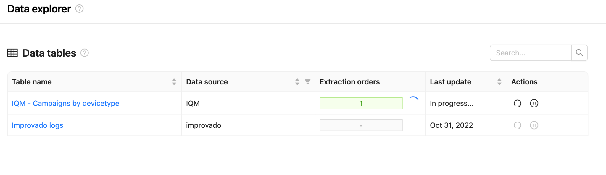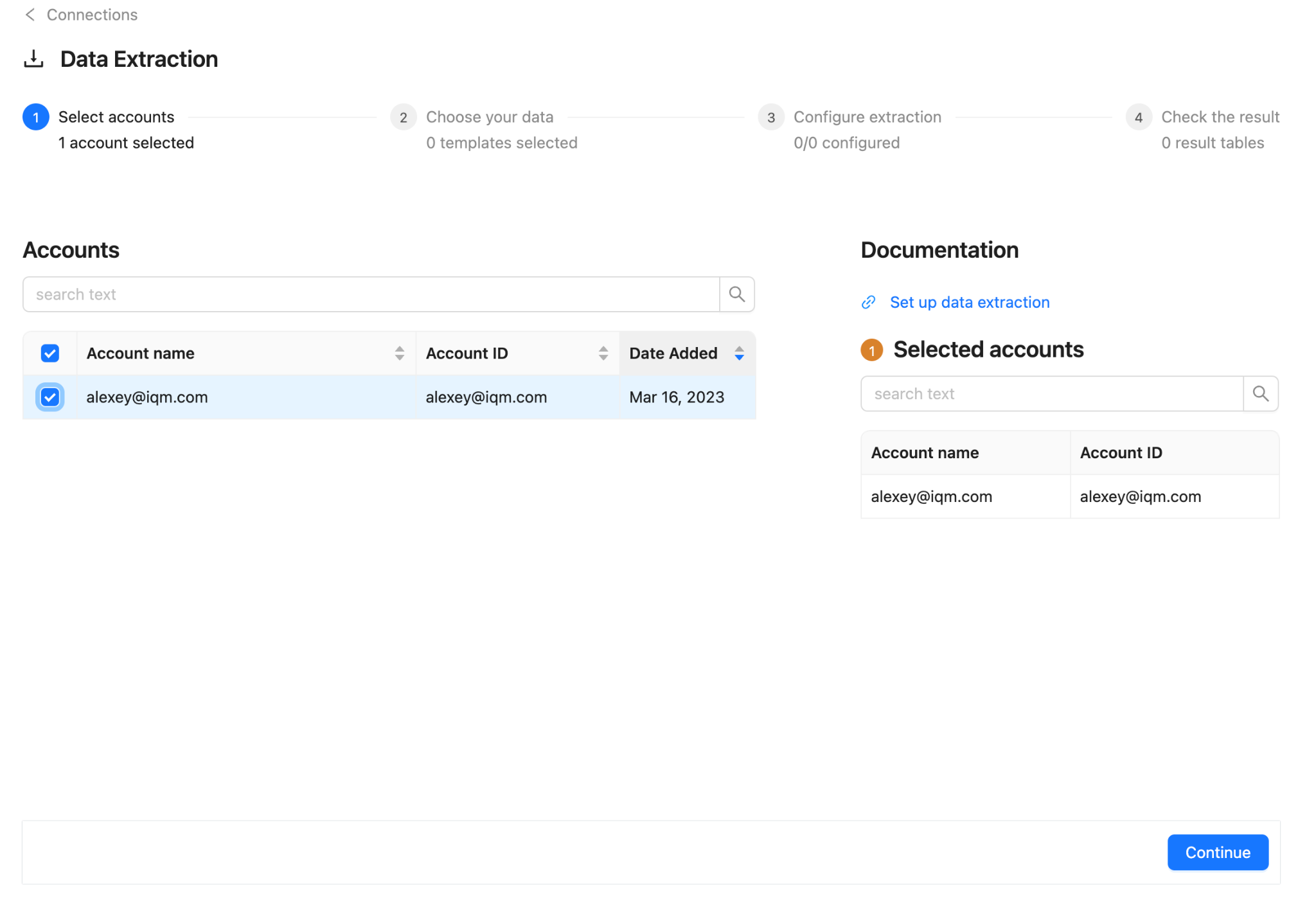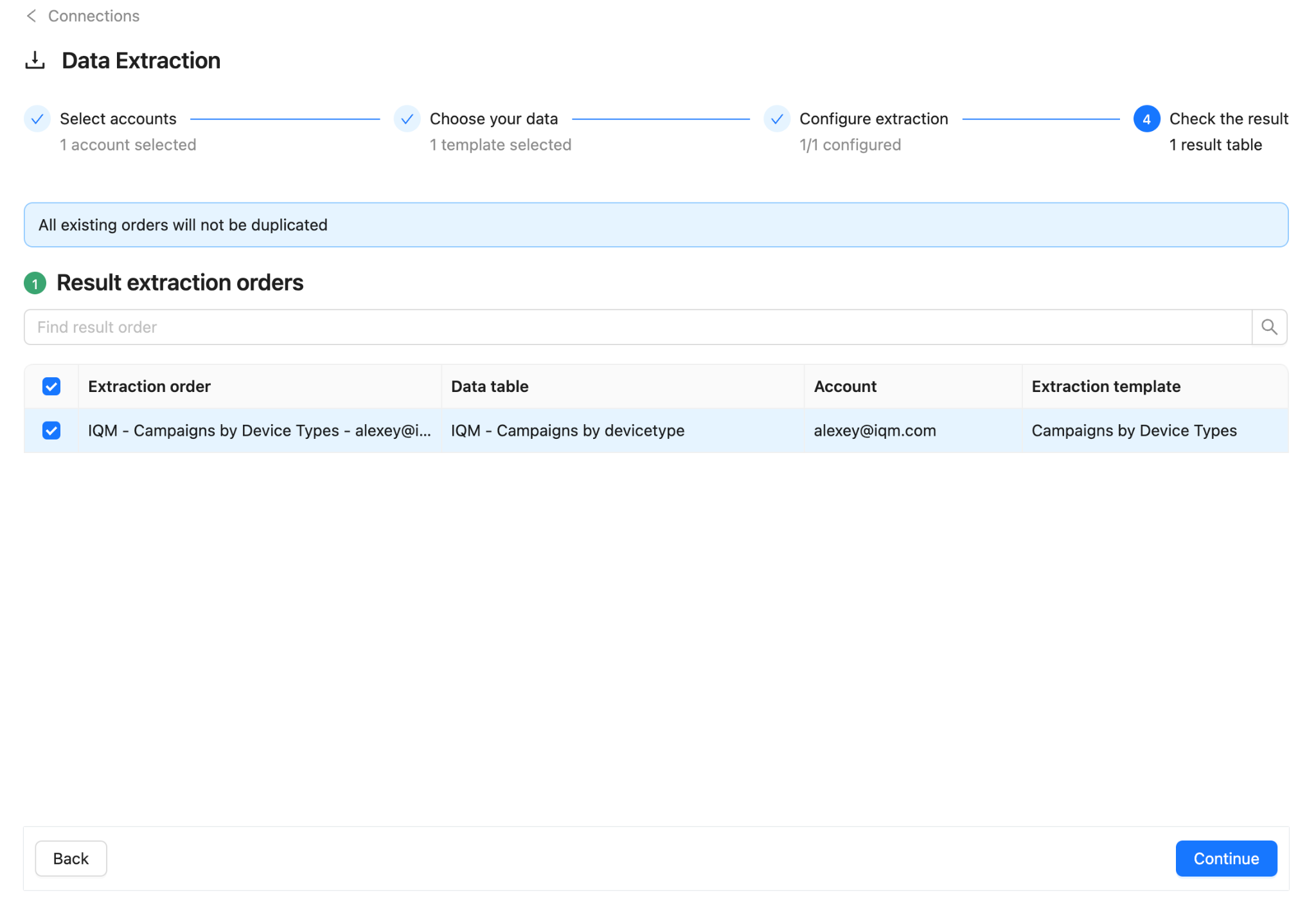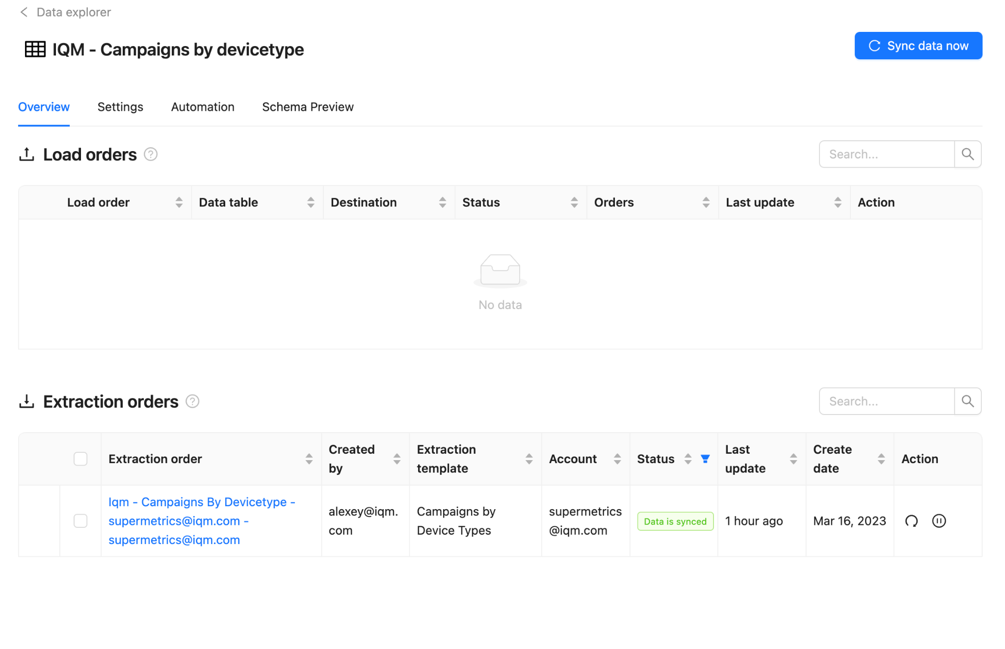 - In the list of Connected Sources, press the Extract link for IQM Data Source