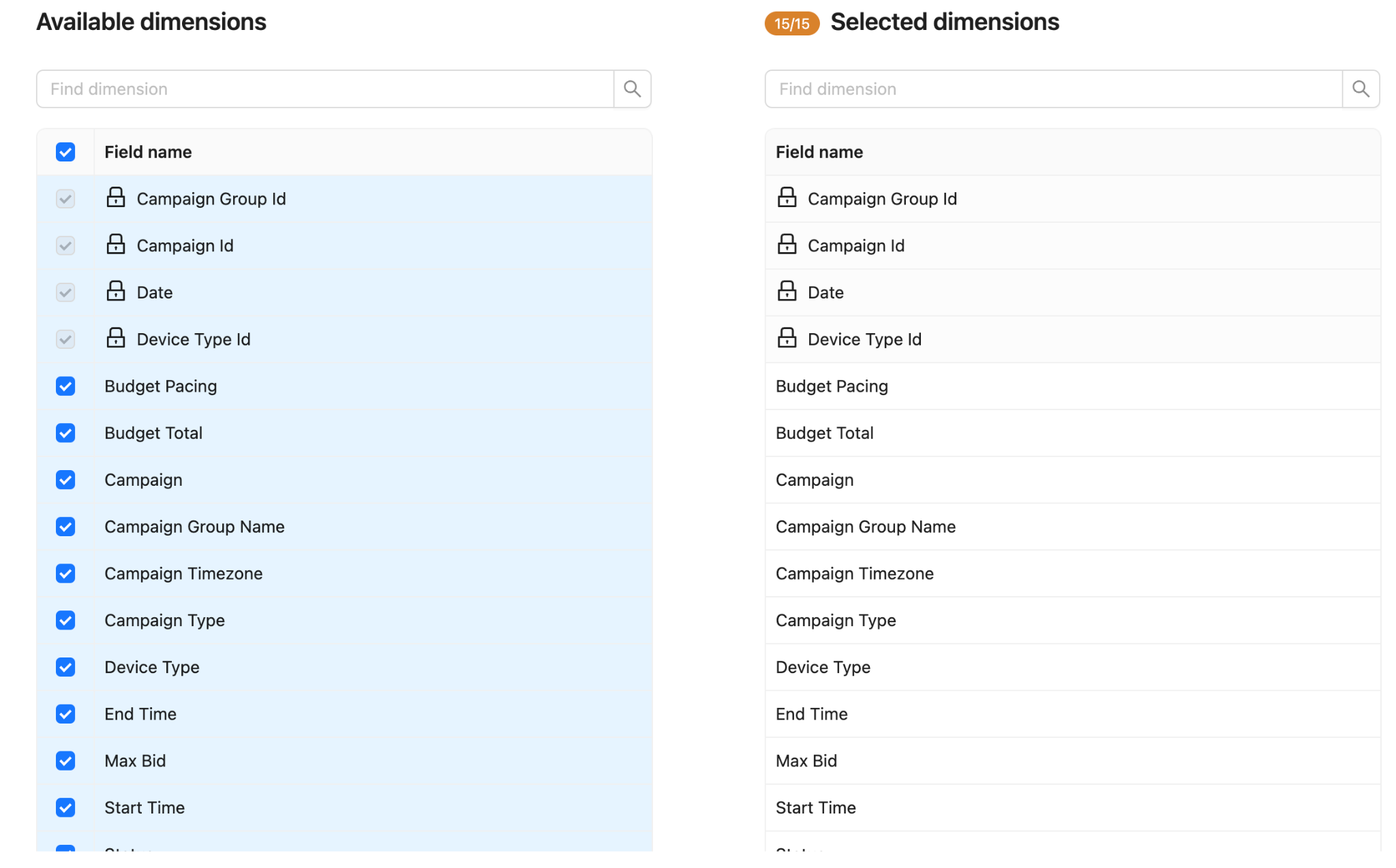 - Select how data should be grouped (Campaigns, Creatives, etc.)