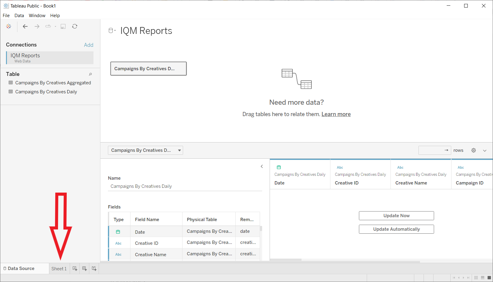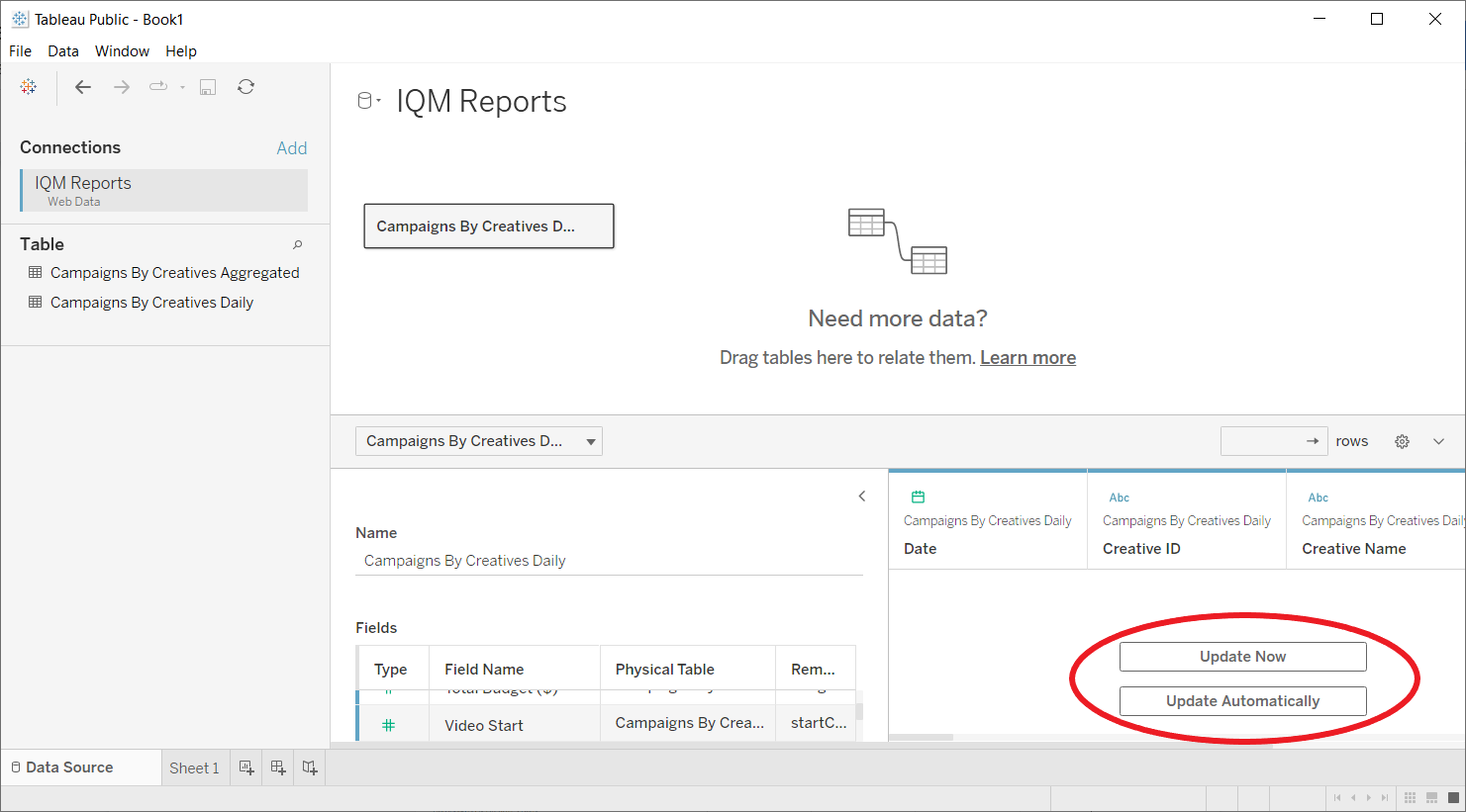 Click Update Now or Update Automatically in the bottom-right panel to preview the data.