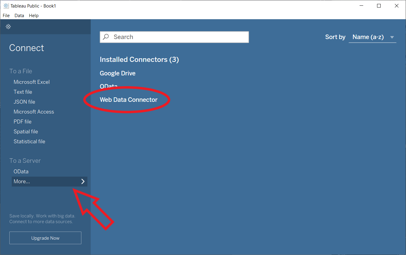 - Select Web Data Connector